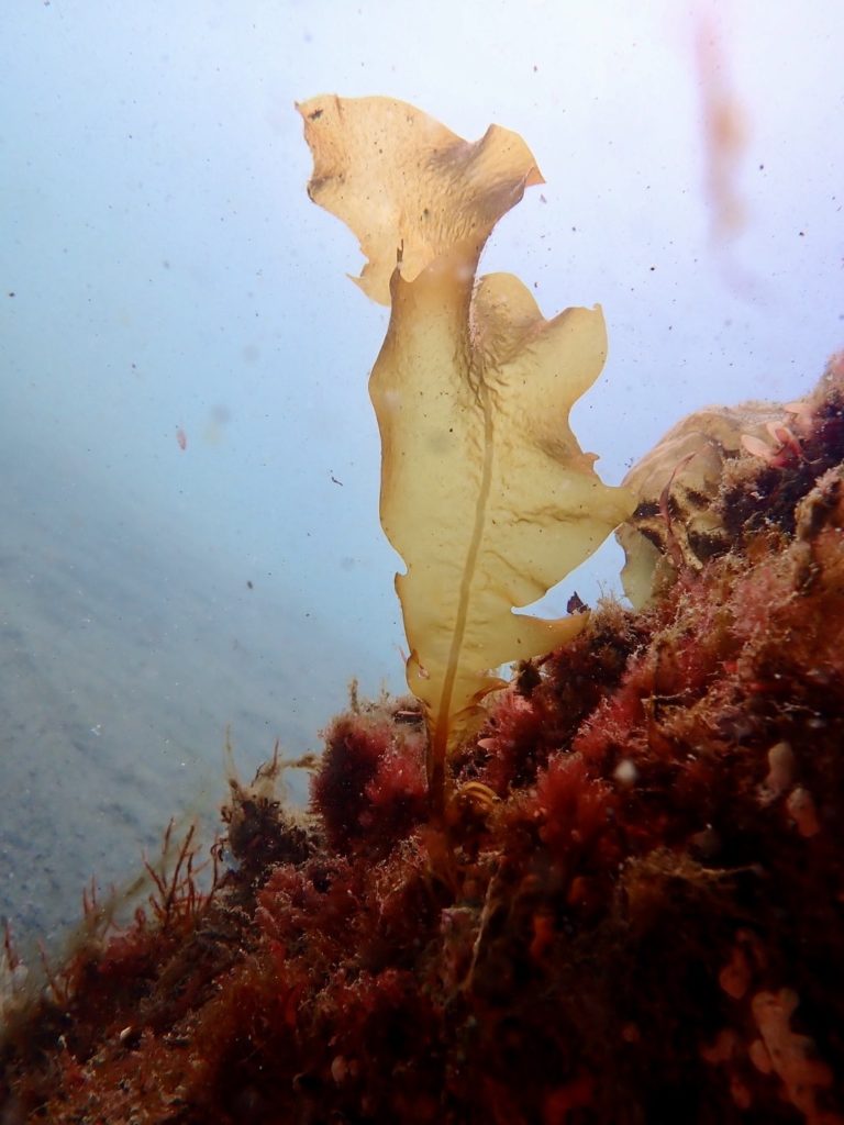 よーく見るとワカメが少しずつ生え始めてきました〜